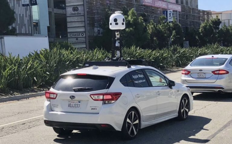 Apple 一開始使用的是改裝過的麵包車收集數據,現在操作人員駕駛的是一輛白色的 SUBARU 翼豹,內部稱為”Ulysses”。這些車輛屬於蘋果 3D 視覺團隊,該團隊負責將多種數據與計算機視覺和機器學習技術相結合,在蘋果地圖上提供 3D 圖像。