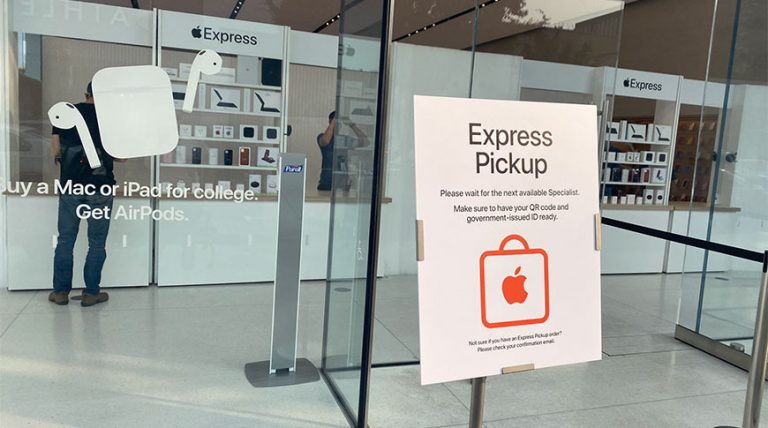 被稱為 “Apple Express “的實體店臨時零售模式正在美國加州的 Apple Burlingame 試營運。該地點有一個內部的店面中心,入口處有一個隔絕,包括帶有玻璃窗阻隔的服務櫃檯,中央展示櫃上有流行的 Apple 配件供購買,周圍的牆壁則屏蔽了店面本身,只是提供用戶快速取貨和天才吧技術支援。