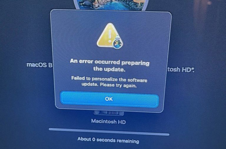 An error occurred preparing the update. Failed to personalize the software update. Please try again.