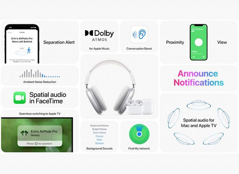 AirPod Max 和 AirPod Pro 還能支援連接所有蘋果設備播放空間音訊 (Spatial Audio),tvOS 中的空間音訊功能,在不影響其他房間的情況下,為觀眾提供全方位的環繞立體聲體驗。