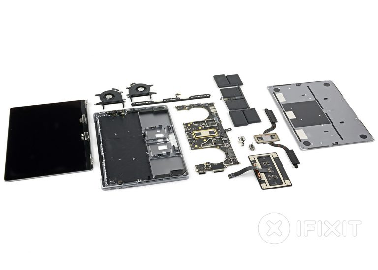 現在比以前更容易維修 MacBook Pro,因為蘋果不再將電池粘在原處。取而代之的是粘性拉片,使電池的更換更加簡化。但維修並不簡單,因為電池附近有揚聲器系統需要處理,而兩個主要電池單元的粘性標籤只能通過拆下觸控板來獲得。