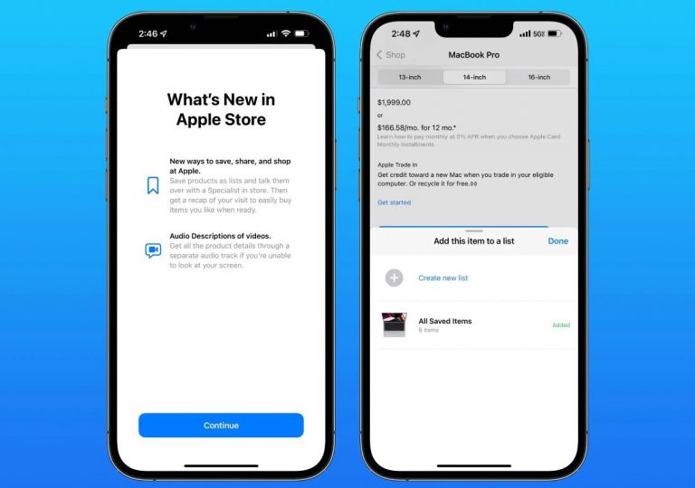 美國 Apple 公司今天對 iPhone 和 iPad 版 Apple Store 商店應用程式進行了小規模更新,新增將心儀商品收藏到清單功能,讓您可以輕鬆地將物品保存到列表中,在網路上或到蘋果商店時與專家分享,然後獲得訪問回顧,幫助你以後購買物品。