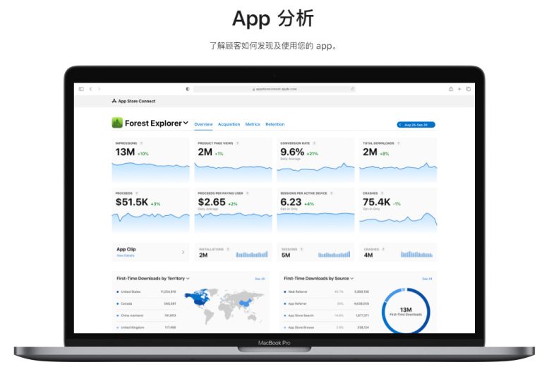 「App 分析」現已可用於 App 內活動:App Store Connect 中的“App 分析”能有效幫助您了解用戶如何發現您的 App 並與之互動。您現在可以查看有關 App 內活動的訊息,包括活動頁瀏覽量、提醒和通知數據,以及由 App 內活動帶來的下載和重新下載次數。每個指標都可以按照地區、來源類型、設備以及更多分類進行查看,讓您能輕鬆了解您的 App 內活動如何推動了App 的成長和成功。