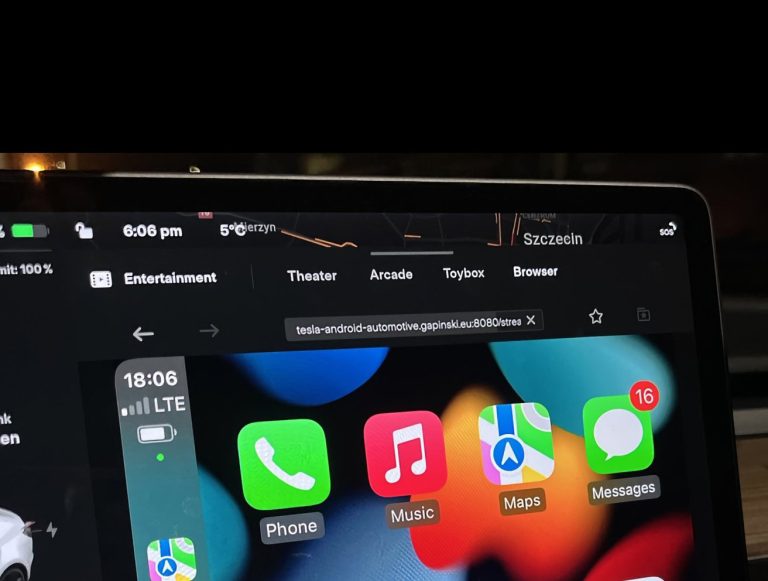 Michal Gapinski 展示了在他的特斯拉汽車顯示螢幕上運行 CarPlay,發現蘋果車載系統功能非常實用,包括 Apple Maps 地圖和 Apple Music 音樂。