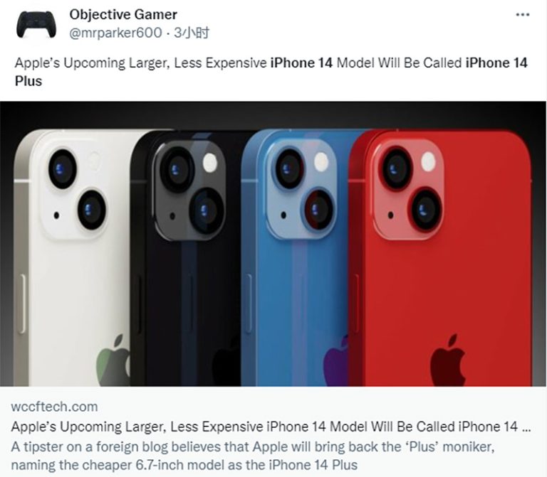 所以今年 iPhone 14 的產品線可能將是:iPhone 14、iPhone 14 Plus、iPhone 14 Pro 和 iPhone 14 Pro Max。