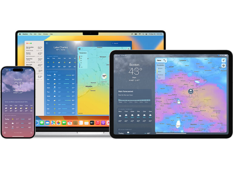 在 iOS 16、iPadOS 16 和 macOS Ventura 中,天氣應用加入了 Dark Sky 的功能。蘋果推出了精確到分鐘的雨雪降水預報,未來 10 天的每小時預報,以及提供濕度、降水水平、能見度、風速等擴展訊息的天氣模組。
