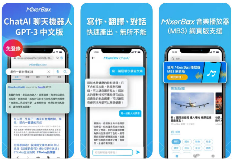 MixerBox 公司今天宣布 ChatAI 聊天機器人上線!推出全球首款支援繁體中文的 AI 聊天網頁瀏覽器 MixerBox ChatAI。台灣在地研發團隊進行繁體中文優化,搭載 OpenAI GPT-3。幫您創作、翻譯、寫情書,無所不能!輸入任意關鍵字,AI 自動產出精準回答!