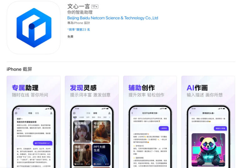 「文心一言」是由百度公司開發的聊天機器人,能夠與人以自然語言交互、回答問題及協作創作。文心一言被稱為著名聊天機器人 ChatGPT 的中國版及其競爭對手。現在文心一言 App 已經上架蘋果 App Store 應用商店,提供免費下載。