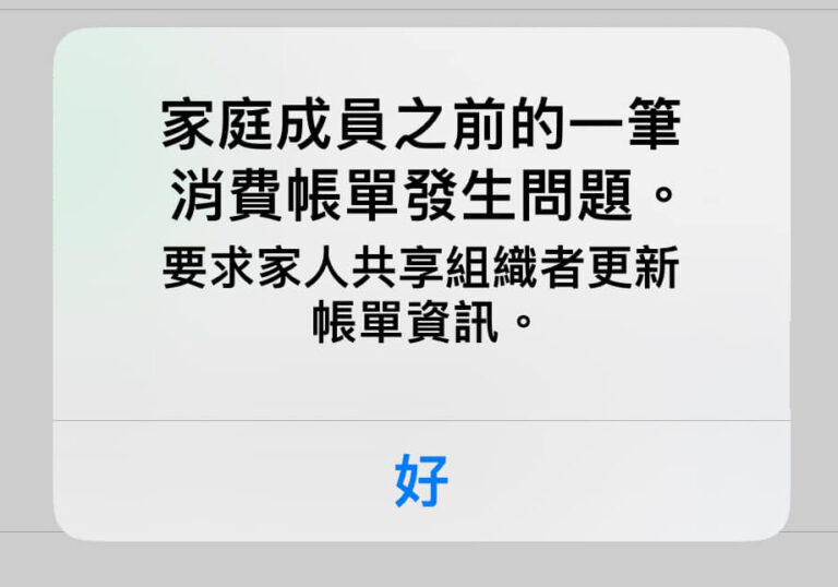 如果你的 iPhone 出現了「家庭成員之前的一筆消費帳單發生問題」的提示,這可能意味著之前在你的家庭共享項目中有一筆付款出現了問題。