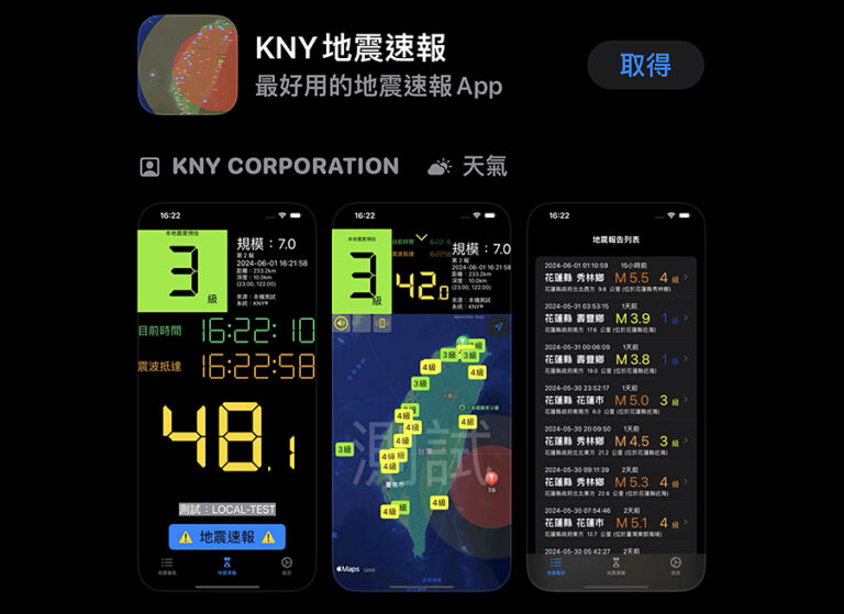 iPhone 立即下載 KNY 地震速報 App,享受最完整的天氣和地震資訊,讓您的生活更安心、更有保障。