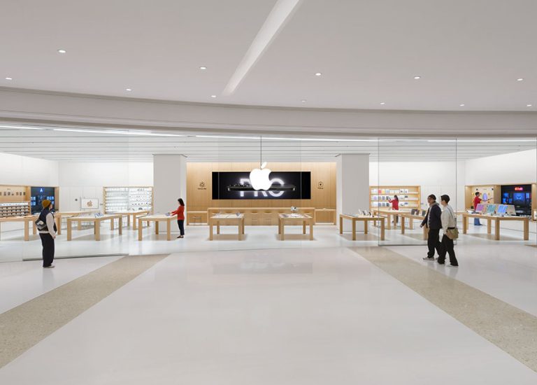 這家零售店採用永續且在地取得的材料,展現了 Apple 對環境保護的承諾。從寬敞的弧形玻璃店面到無縫融合的內外設計,每一處細節都體現了 Apple 對卓越設計的追求。